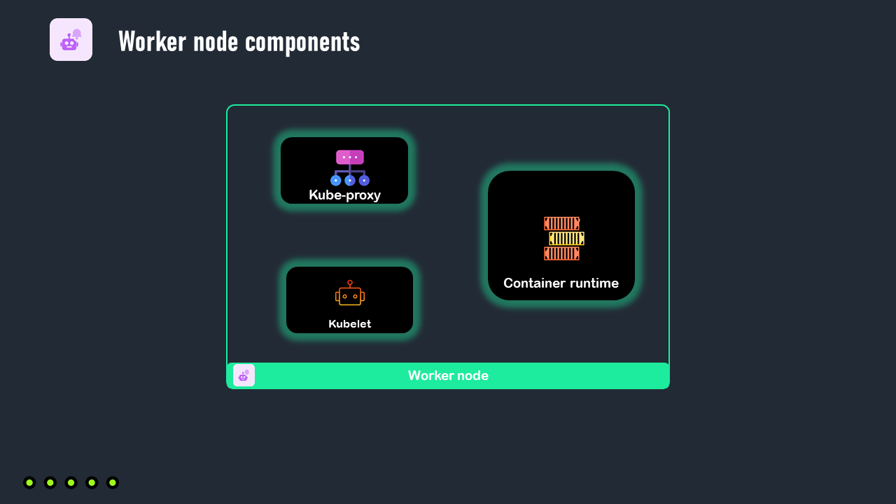 We will move now to the architecture of a worker node. Each worker node has 3 components: