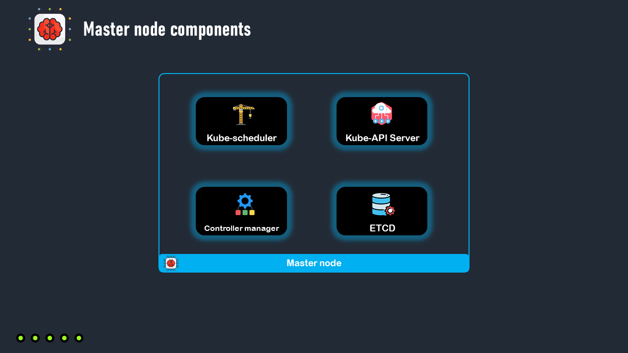 The master node has a set of components that enable him to make global decisions about the cluster, as well as detecting and responding to cluster events.